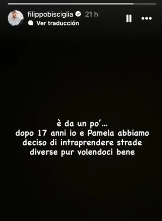 «Dopo 17 anni abbiamo deciso di intraprendere strade diverse pur volendoci bene», ha scritto il conduttore di Temptation Island nelle sue storie Instagram. Parole simili quelle di Pamela, che ha parlato di un addio doloroso ma sereno, arrivato «dopo 17 anni intensi e pieni di vita insieme».